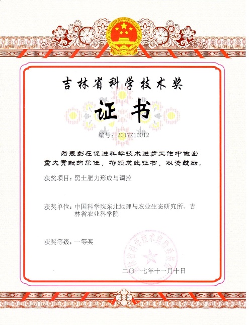 (2)黑土肥力形成與調(diào)控,2017年獲得吉林省自然科學(xué)一等獎(jiǎng)。該成果科學(xué)的揭示了東北黑土肥力形成、變化過程和高強(qiáng)度農(nóng)田管理措施下的肥力調(diào)控機(jī)制。