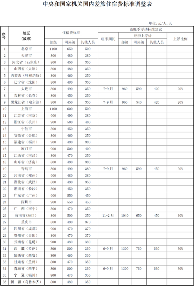 為貫徹落實(shí)《黨政機(jī)關(guān)厲行節(jié)約反對浪費(fèi)條例》和差旅費(fèi)制度關(guān)于標(biāo)準(zhǔn)應(yīng)適時(shí)調(diào)整的規(guī)定,進(jìn)一步規(guī)范和加強(qiáng)中央和國家機(jī)關(guān)差旅費(fèi)管理,財(cái)政部下發(fā)了《關(guān)于調(diào)整中央和國家機(jī)關(guān)差旅住宿費(fèi)標(biāo)準(zhǔn)等有關(guān)問題的通知》(財(cái)行[2015]497號(hào))?,F(xiàn)轉(zhuǎn)發(fā)該通知,并自2016年1月1日起調(diào)整我所的差旅費(fèi)管理規(guī)定的差旅住宿費(fèi)標(biāo)準(zhǔn),具體見下表: