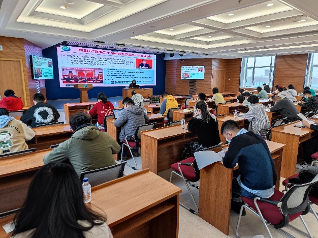 根據(jù)東北地理所黨委學(xué)習(xí)宣傳貫徹黨的二十大精神工作方案要求,研究生黨總支、所團(tuán)委于2022年11月25日上午組織開展黨委委員講黨課活動(dòng),根據(jù)疫情防控相關(guān)規(guī)定,活動(dòng)以線下+線上相結(jié)合的方式進(jìn)行。本次活動(dòng)邀請(qǐng)到所黨委委員、黨委辦公室主任李穎同志為全體研究生黨員、團(tuán)員及群眾作題為《學(xué)習(xí)貫徹黨的二十大精神,爭(zhēng)做新時(shí)代好青年》的專題報(bào)告,長(zhǎng)春園區(qū)研究生黨員、團(tuán)員和群眾150余人參會(huì),所團(tuán)委副書記、研究生第一黨支部書記李盟同志主持會(huì)議。