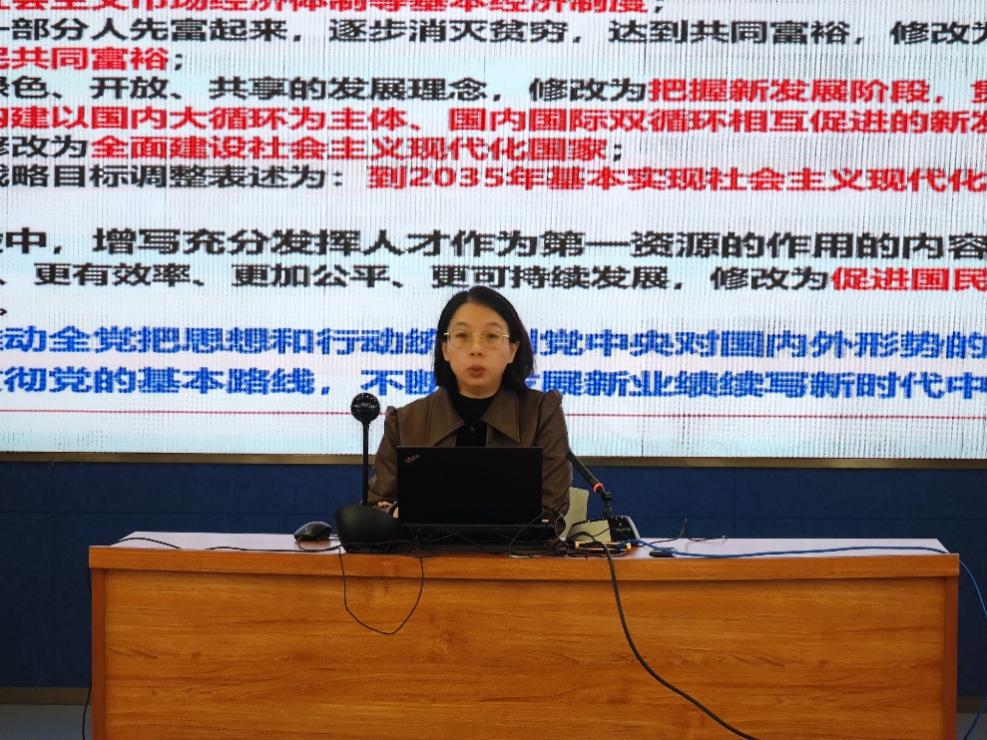 首先,李穎從“推動(dòng)中華民族偉大復(fù)興號(hào)巨輪乘風(fēng)破浪、揚(yáng)帆遠(yuǎn)航”與“深刻領(lǐng)會(huì)二十大黨章修正案的重大意義與重要內(nèi)容”兩部分內(nèi)容為全體黨員闡述了黨的二十大的重要?dú)v史意義。李穎強(qiáng)調(diào),黨的二十大報(bào)告對(duì)習(xí)近平新時(shí)代中國特色社會(huì)主義思想的科學(xué)內(nèi)涵和歷史定位作了充實(shí)完善,蘊(yùn)含著黨的十九大以來黨的理論創(chuàng)新、實(shí)踐創(chuàng)新、制度創(chuàng)新成果,充分體現(xiàn)了馬克思主義中國化和時(shí)代化的最新成果,充分彰顯了黨章作為黨的根本大法的政治綱領(lǐng)性、思想指引性、時(shí)代引領(lǐng)性,對(duì)統(tǒng)一全黨意志和行動(dòng),深入推進(jìn)新時(shí)代黨的建設(shè)新的偉大工程具有十分重大的意義。李穎指出,全體研究生要深入學(xué)習(xí)黨的二十大精神,為加快實(shí)現(xiàn)高水平科技自立自強(qiáng)貢獻(xiàn)智慧和力量。